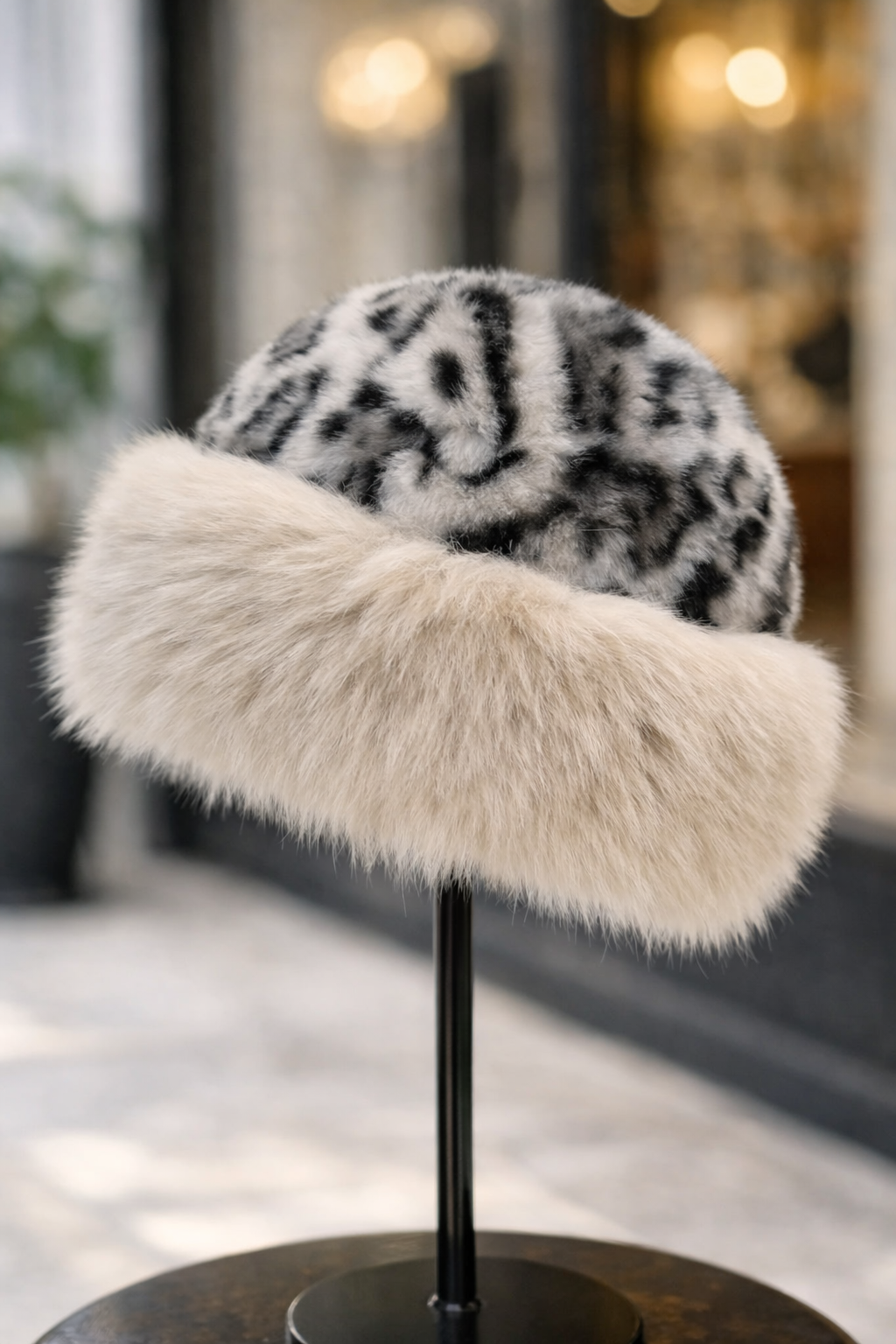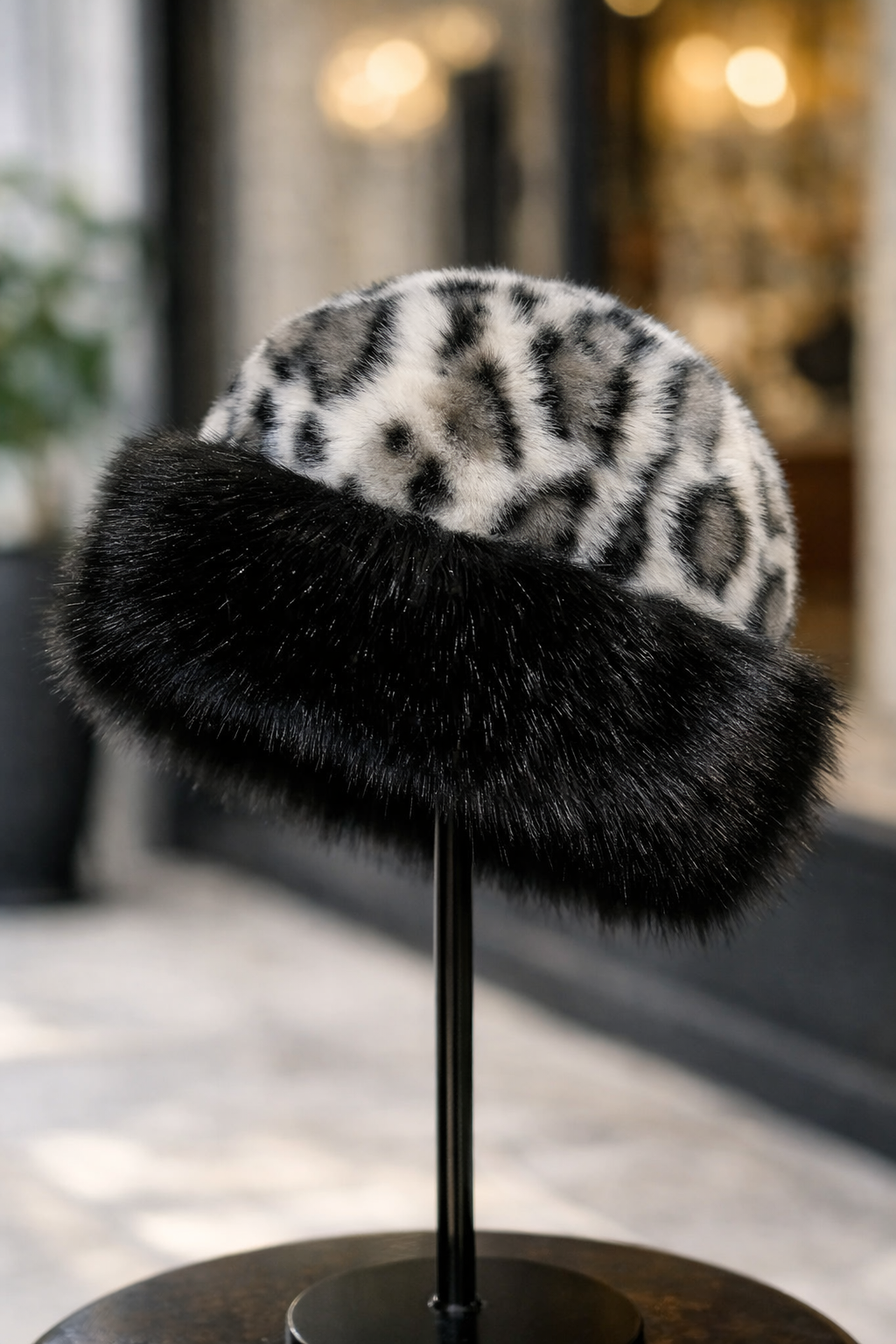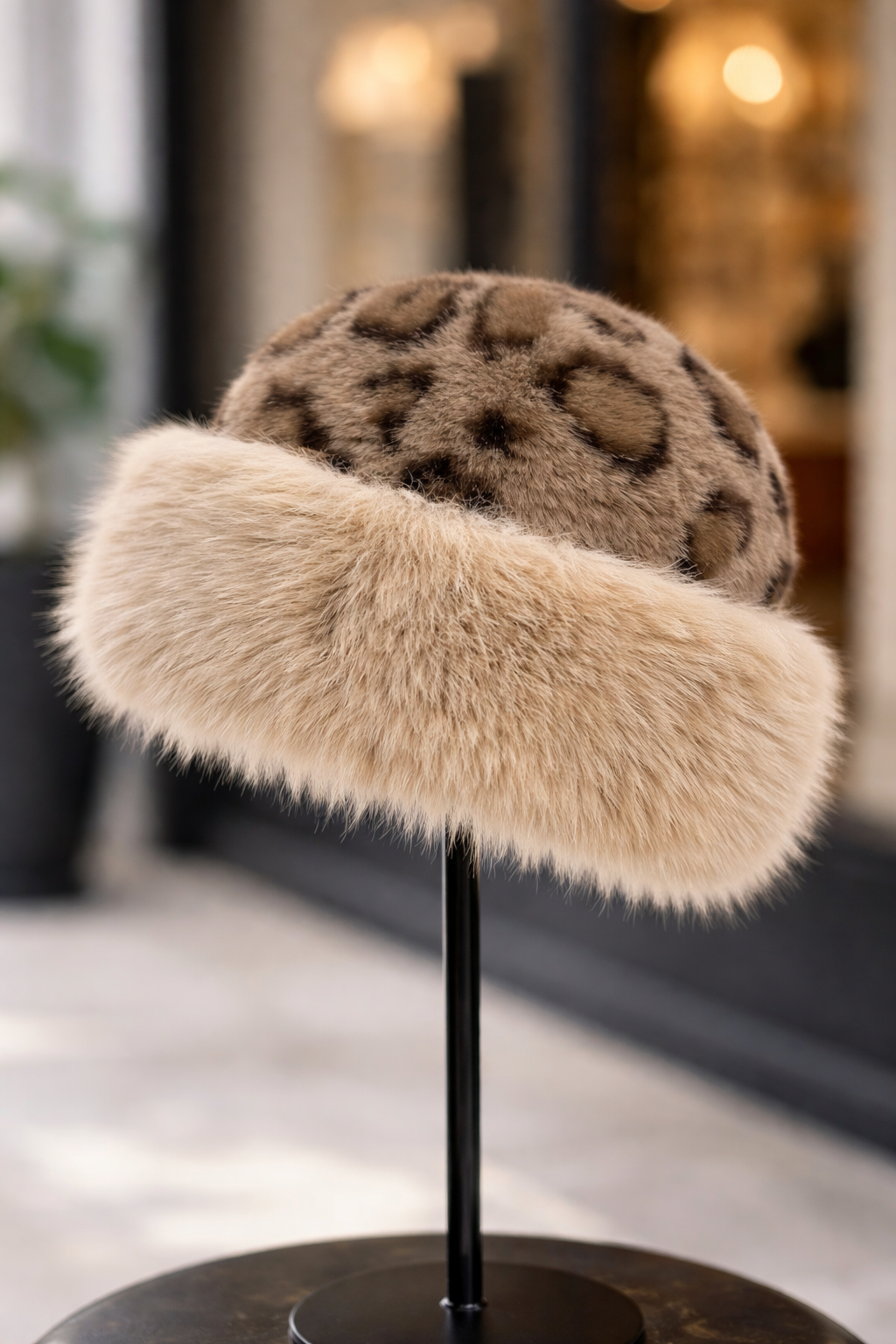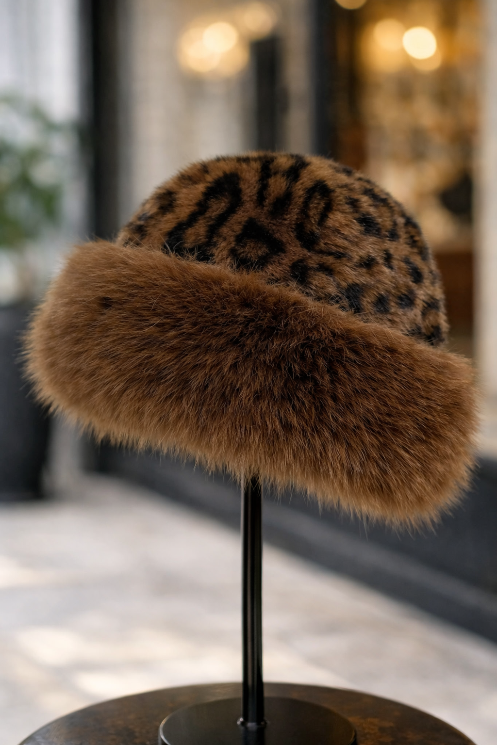 Step into the season with confidence in the Amara™ Leopard Print Fur Hat — where bold design meets timeless sophistication.
